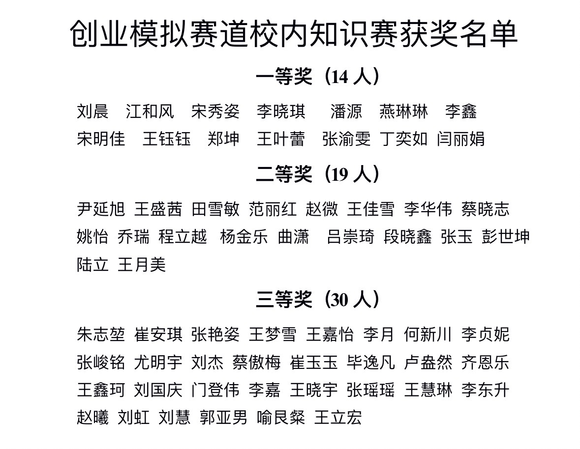 此次竞赛经过知识赛、校内选拔赛及山东省总决赛预选赛后,大赛组委会通过组织线上创业软件模拟竞赛,根据各参赛团队成绩,评选出山东省总决赛本科组(含研究生组)一等奖138项、二等奖183项和三等奖136项。williamhill官网获得一等奖的3支队伍晋级全国总决赛。williamhill官网知识赛于4月13日进行,共计143名同学参加了线上知识赛答题。14名同学获得校赛一等奖,19名同学获得二等奖,30名同学获得三等奖。在平台模拟校内选拔赛阶段,27支团队参加了比赛,根据平台软件竞赛得分优选出10支队伍角逐山东省总决赛。
