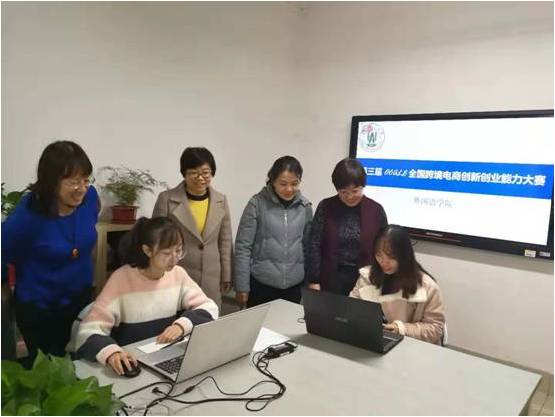 11月21日上午,williamhill体育在线登录领导纪卫宁、李春梅、高秀雪亲临竞赛现场看望我院第三届 OCALE 全国跨境电商创新创业能力竞赛队员,并给他们鼓劲加油。