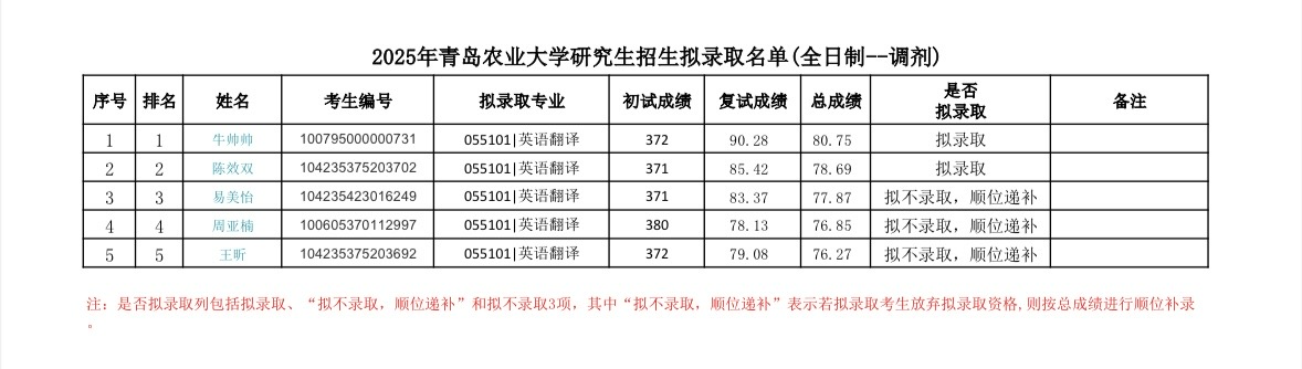 2025年williamhill体育在线登录研究生招生拟录取名单(全日制——调剂)