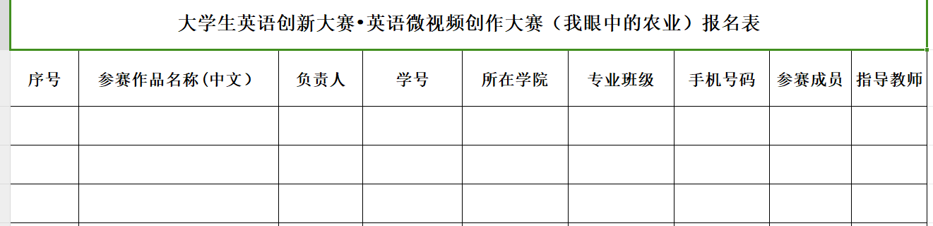 为有效落实高校立德树人根本任务,充分发挥大学英语课程育人功能,引导学生厚植三农情怀,擦亮农字底色,特举办大学生英语创新大赛•英语微视频创作大赛(我眼中的农业)。大赛旨在通过微视频创作,鼓励学生立足乡村振兴国家战略、科技强国战略、双碳战略等时代背景,从个人视角创新性地用英语讲好中国农业故事,传播中国声音,坚定文化自信。