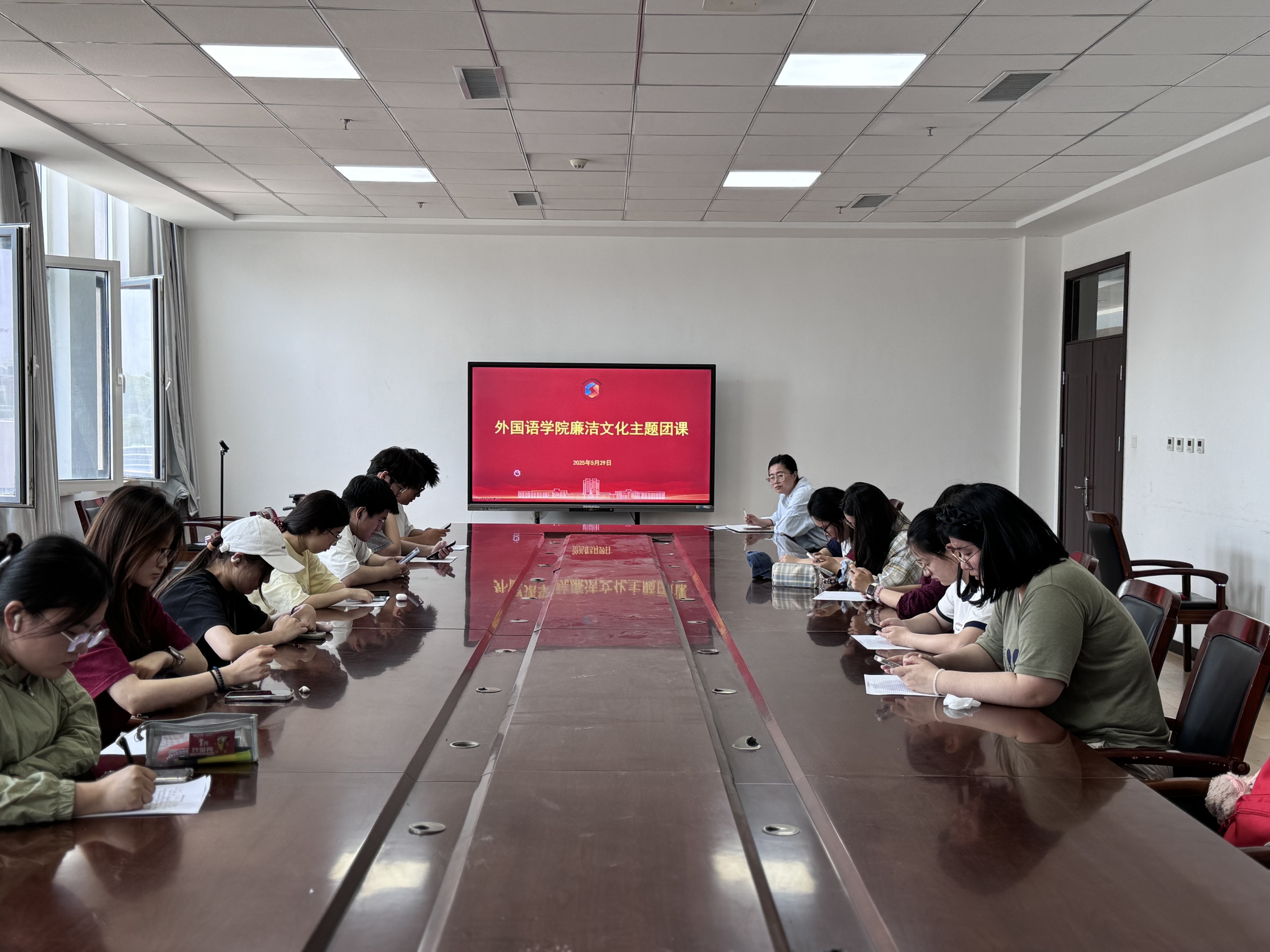 5月29日,williamhill体育在线登录团委书记线郁在平度校区大学生活动中心201会议室讲授廉洁文化主题团课,辅导员仇文峰、邹晓婷及全体学生骨干线上线下参加。