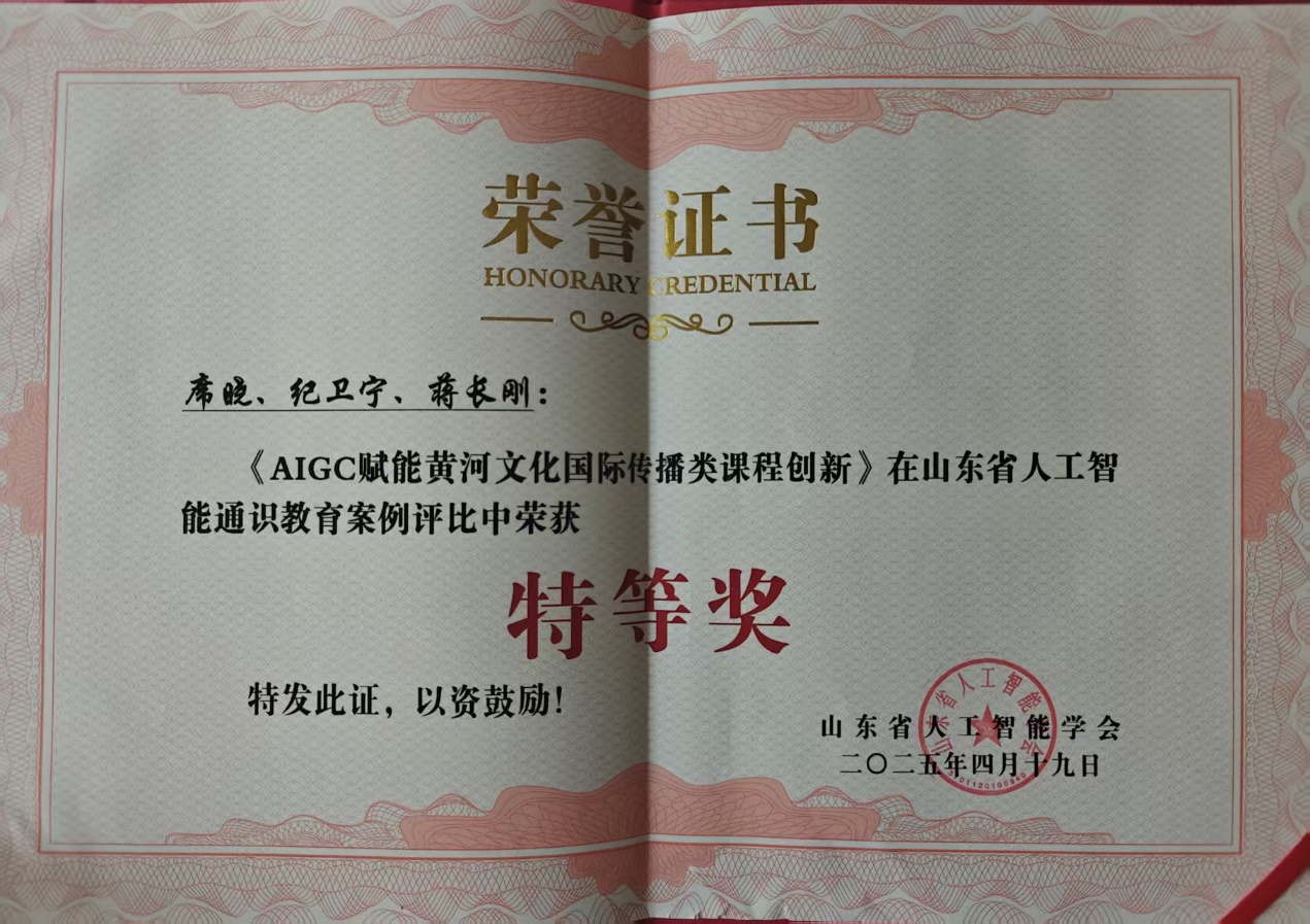4月19日至20日,山东省人工智能学会公布了“人工智能通识教育优秀教学案例”评选结果。williamhill体育在线登录“GenAI赋能黄河文化对外传播课程群”智慧教学团队纪卫宁、席晓、蒋长刚三位教师凭借《AIGC赋能黄河文化国际传播类课程创新案例斩获特等奖并入选优秀案例集。
