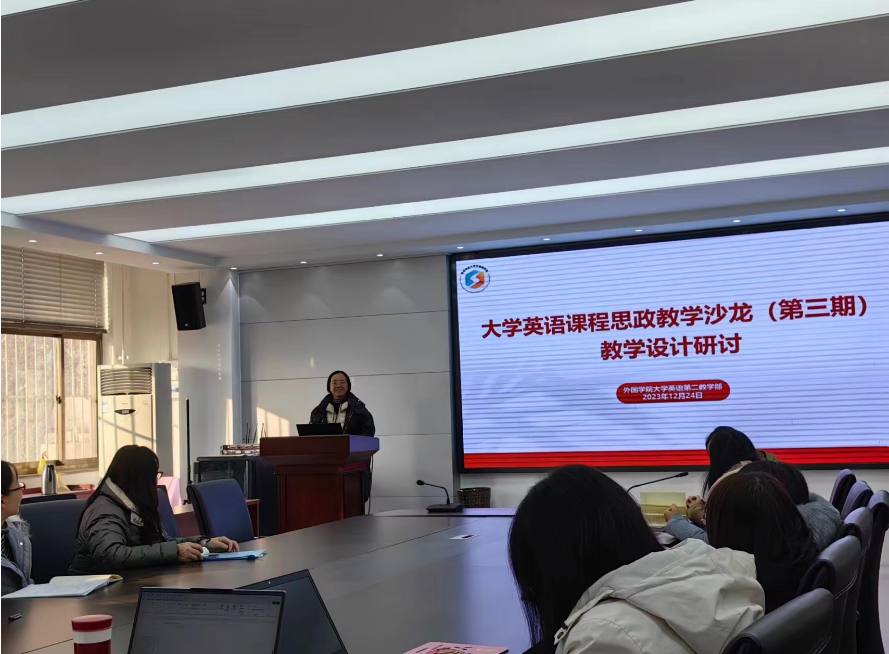为进一步深化课程思政教学改革,更好地推进课程思政建设,发挥课堂教学立德树人的主渠道作用,12月25日,williamhill体育在线登录大学英语第二教学部在文经楼C220资料室举办第三期大学英语课程思政教学沙龙。本次活动由大学英语第二教学部主任聂庆娟主持,大学英语第二教学部全体教师参加会议。