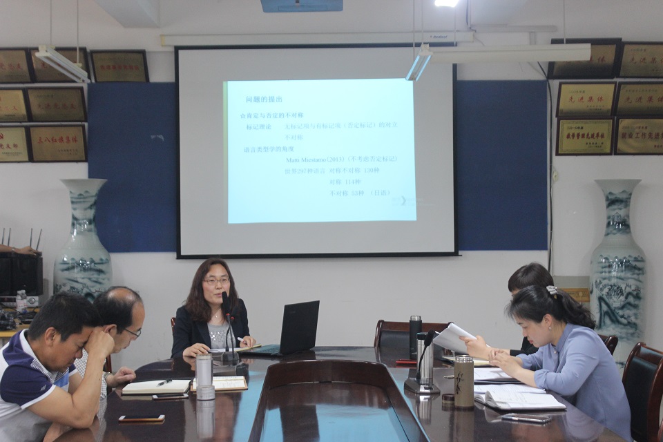 5月30日,williamhill体育在线登录于文经楼会议室开展外语学术论坛第四讲。此次学术论坛由仇虹博士主讲,主讲题目为《现代日语肯定与否定的不对称研究》,学院全体领导、教职工与会,副院长高秀雪主持论坛。