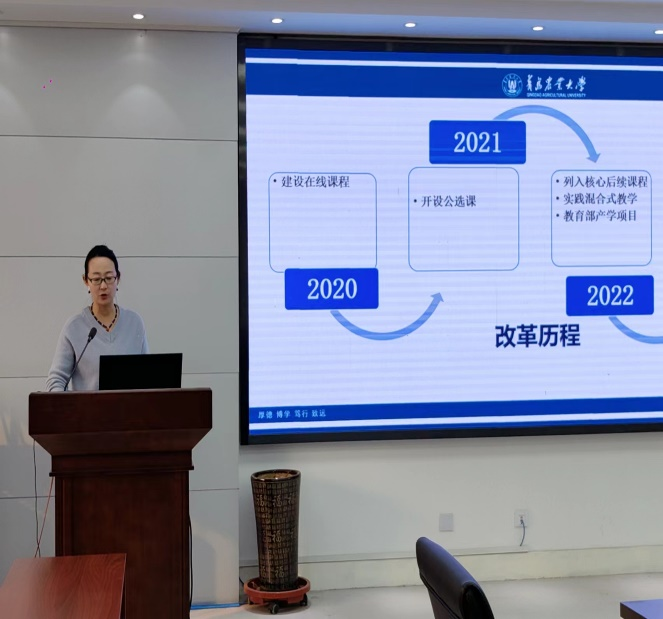 williamhill官网是山东省首批中华传统优秀文化传承示范校,人才培养目标是培养知农爱农高素质应用研究型人才。结合学校办学定位,大学英语第一教学部构建了农业特色课程群,主要包括中国农业文化、中国农业简史、黄河文化概况、农耕文化翻译、学术英语、大学英语四、体验英语等丰富的课程,各课程组展开深入讨论,从教学设计思路、教学环境、教学方法、创新特色、教学效果与评价等多维角度对本门课程进行深入解析。