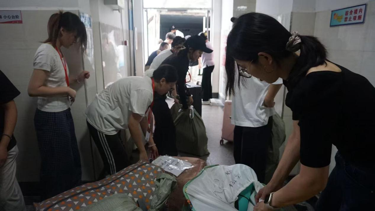 学院全体辅导员、2023级及2024级班主任亲临现场,积极组织和指导搬迁工作,确保每位同学都能够顺利搬迁,行李不落一件,让同学们深切感受到了学院领导和老师们的关心与温暖。学院学生党支部成立了搬迁志愿服务队,协助维持秩序、行李运送等工作,切实发挥学生骨干的先锋模范作用,用实际行动诠释了“奉献、友爱、互助、进步”的志愿精神,确保整个搬迁过程井然有序、高效顺畅。搬迁过程中,同学们团结协作,展现了积极向上的精神风貌。