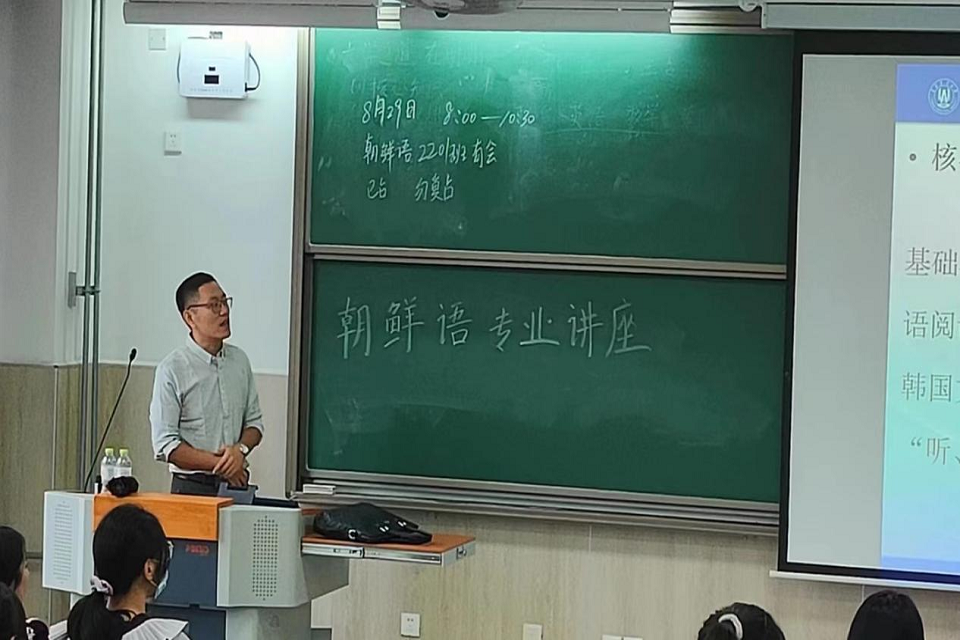 为帮助2022级学生尽快适应大学学习生活,引导学生致力专业学习,8月29日上午,williamhill体育在线登录于平度校区组织各系分别召开2022级新生入学教育专业讲座,英语系主任徐玉凤、朝鲜语系主任李天择、英语系副主任兼校企合作方向负责人左燕茹、日语系副主任王健担任主讲。
