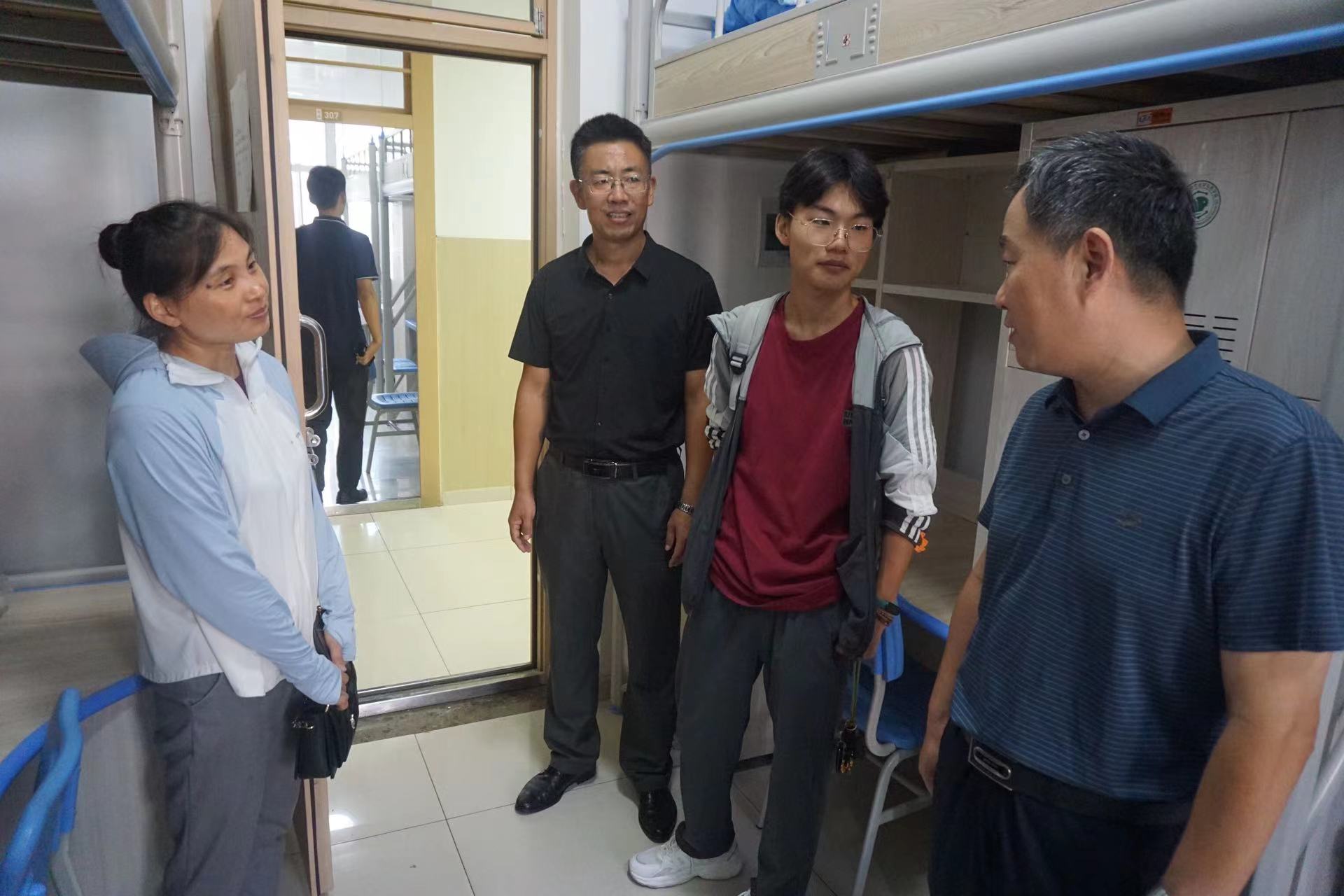 学院党委书记王效仿在迎新现场与新生及其家长就学院的基本情况和特色优势进行交流,并实地走访了新生宿舍,他鼓励新生勤于学习,努力进步,尽快适应大学生活。