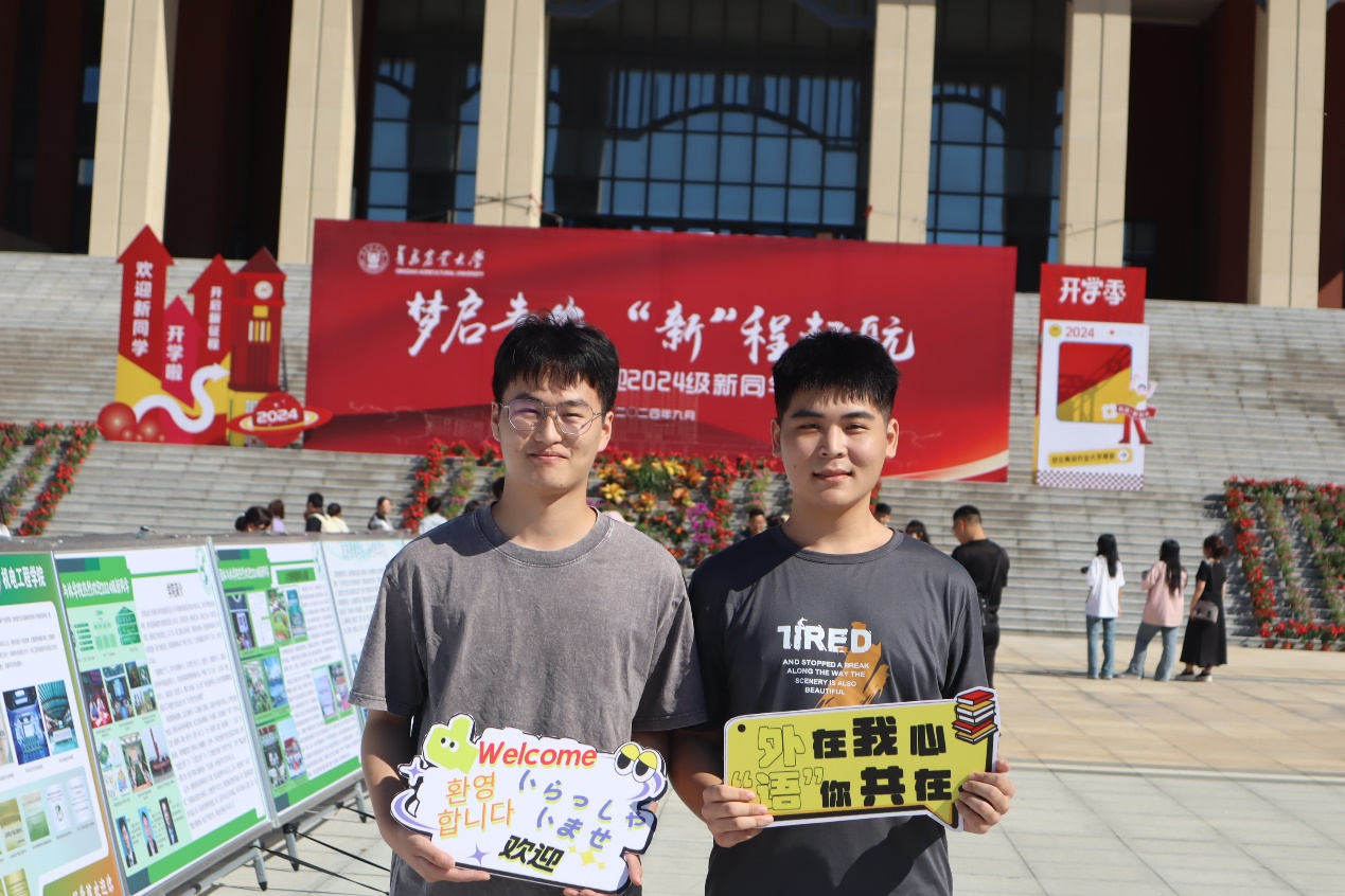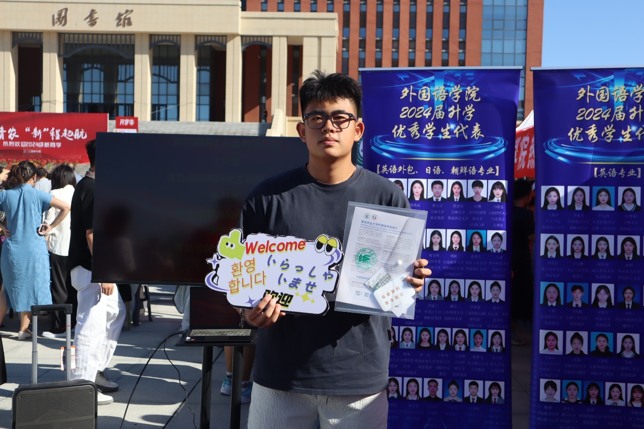 学院以“展示人才培养成果,树立新生专业自信”为主题开展特色迎新活动。定制迎新大礼包,内容包含多语“欢迎你”校园卡套、学院宣传册、新生入学指南等,让新生收获学院热情和温暖的同时,感受语言魅力,赋予新生专属于外院的“logo”。制作师生祝福视频、外院学子风采展、用外语讲好中国故事系列短片,通过电子显示屏,滚动播放外院学子在升学就业、创新创业、社会实践和志愿服务等方面的风采,激发新生的学习热情,增强学生的专业认同。此外,还特别制作了以全体新生名字组成“我爱外院”的创意手牌,增强新生的学院归属感和荣誉感,感受外院大家庭的温暖。