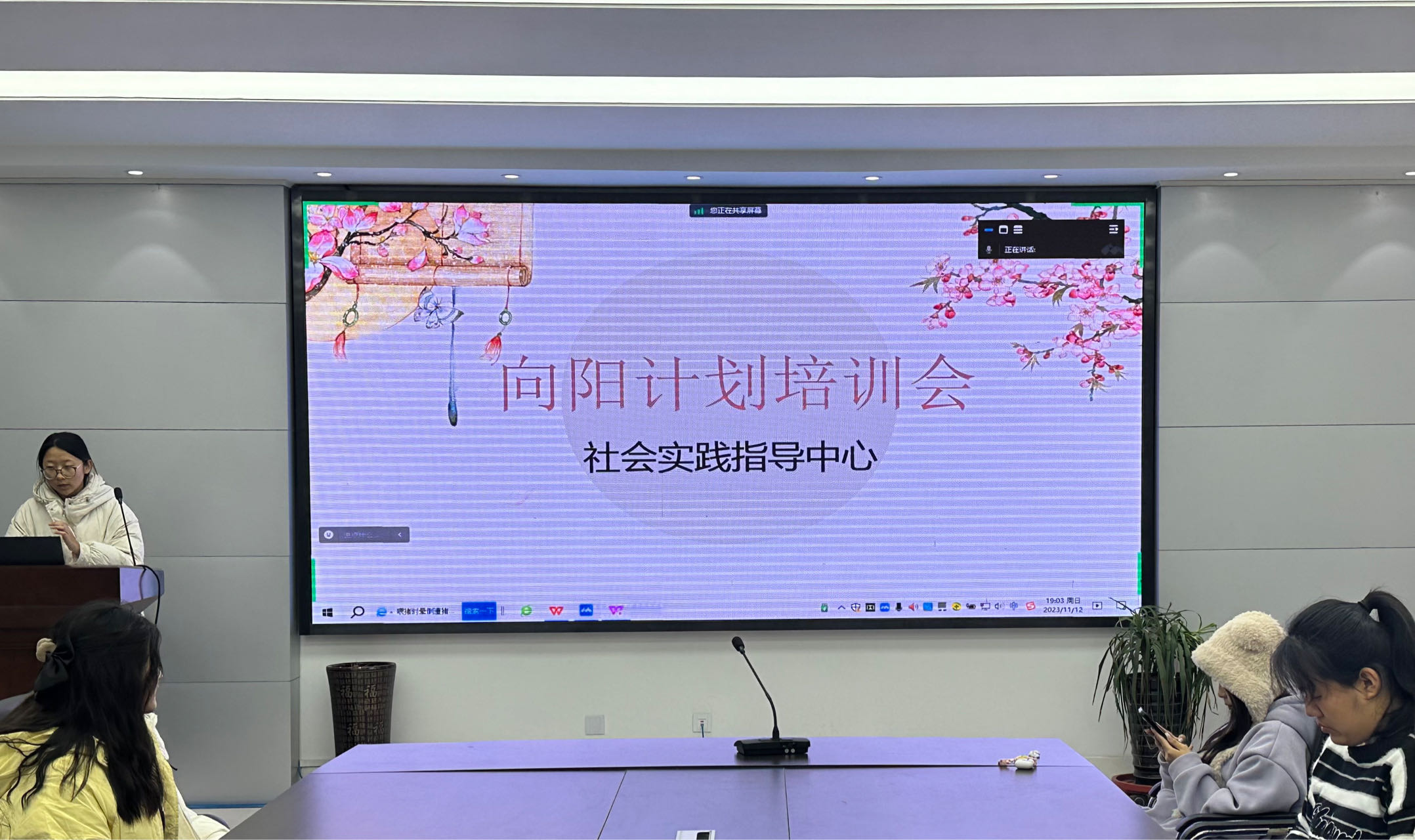 中心主任王皓晴对前期“向阳计划”开展情况进行总结,讲解了“向阳计划”社区实践的意义、课程体系设置情况和今后工作计划,并对志愿者进行相关培训。