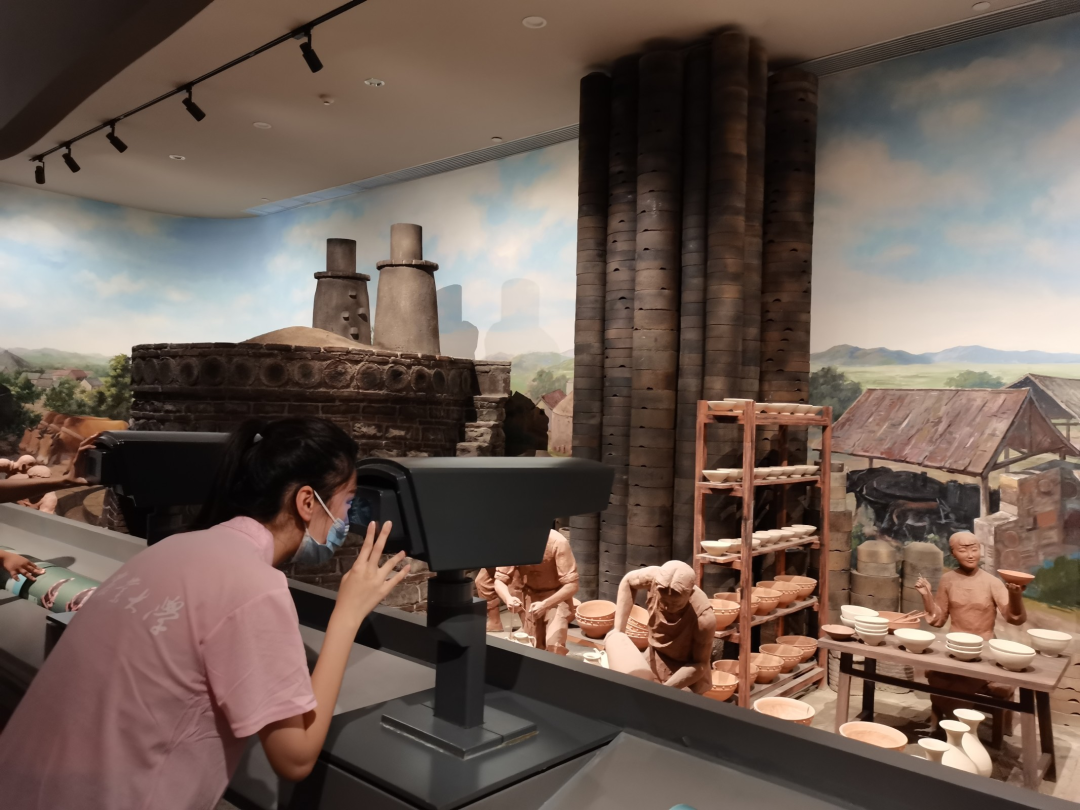 在参观过程中,成员们不仅注意到了古香古色的陶瓷琉璃,还有各式各样的现代化讲解设备,智能机器人“小陶”会解答你的各种疑惑。沙盘和投影,将临淄的千年历史融于科技与光影中。博物馆工作人员告诉实践团成员:“我们现在采取的是预约制参观,游客可以采用线上小程序的方式进行预约,另外还可以通过博物馆官方网站,了解到博物馆开闭馆时间和最新活动。我们还会面向社会定期开展公益活动和作品征集活动,让每一个人切身感受到陶瓷文化的魅力,增强人们的文化自信。”