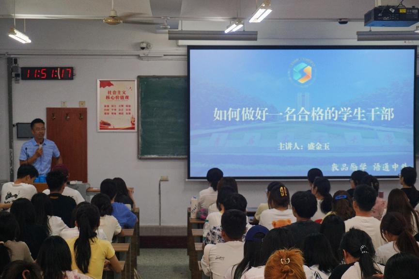 9月3日,williamhill体育在线登录于教学楼C209举行新学期学生干部培训,学院党委副书记副院长盛金玉主讲,学院全体辅导员和学生骨干参会。