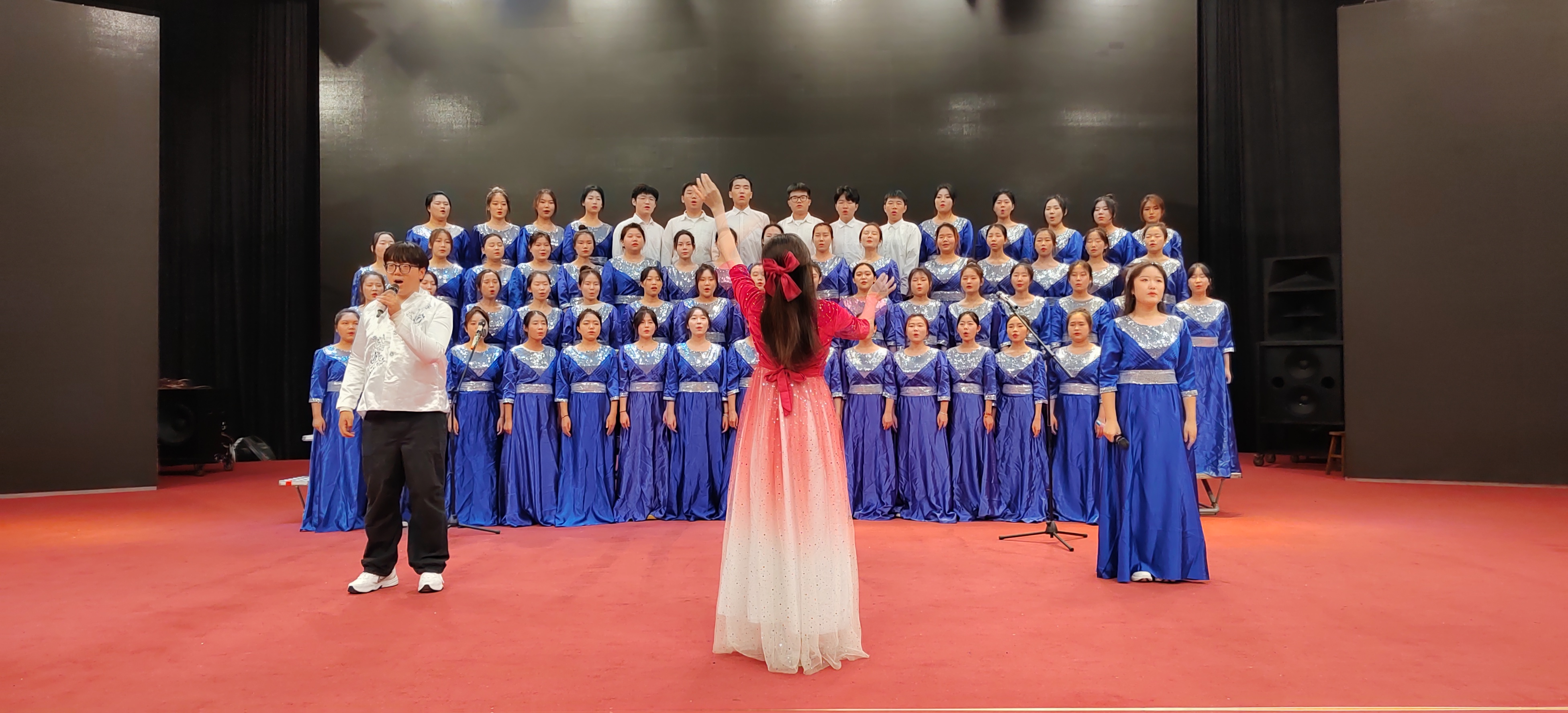 在学院领导和学工办全体老师的指导下,院学生会文艺部组织开展训练。外院学子充分利用课余时间认真排练,积极练唱。自十月份正式开展合唱训练以来,72名合唱队员不惧秋冬的寒风,凭借毅力保障了全队训练零缺席,许多同学更是上完最后一节晚课再匆匆赶去训练;无论是前期训练还是比赛上台,同学们都热情洋溢,声音洪亮,时刻拿出自己最好的状态,充分展现了williamhill体育在线登录学生朝气蓬勃、积极昂扬的精神面貌,更体现出全体师生团结一致,奋发向上的毅力和决心。