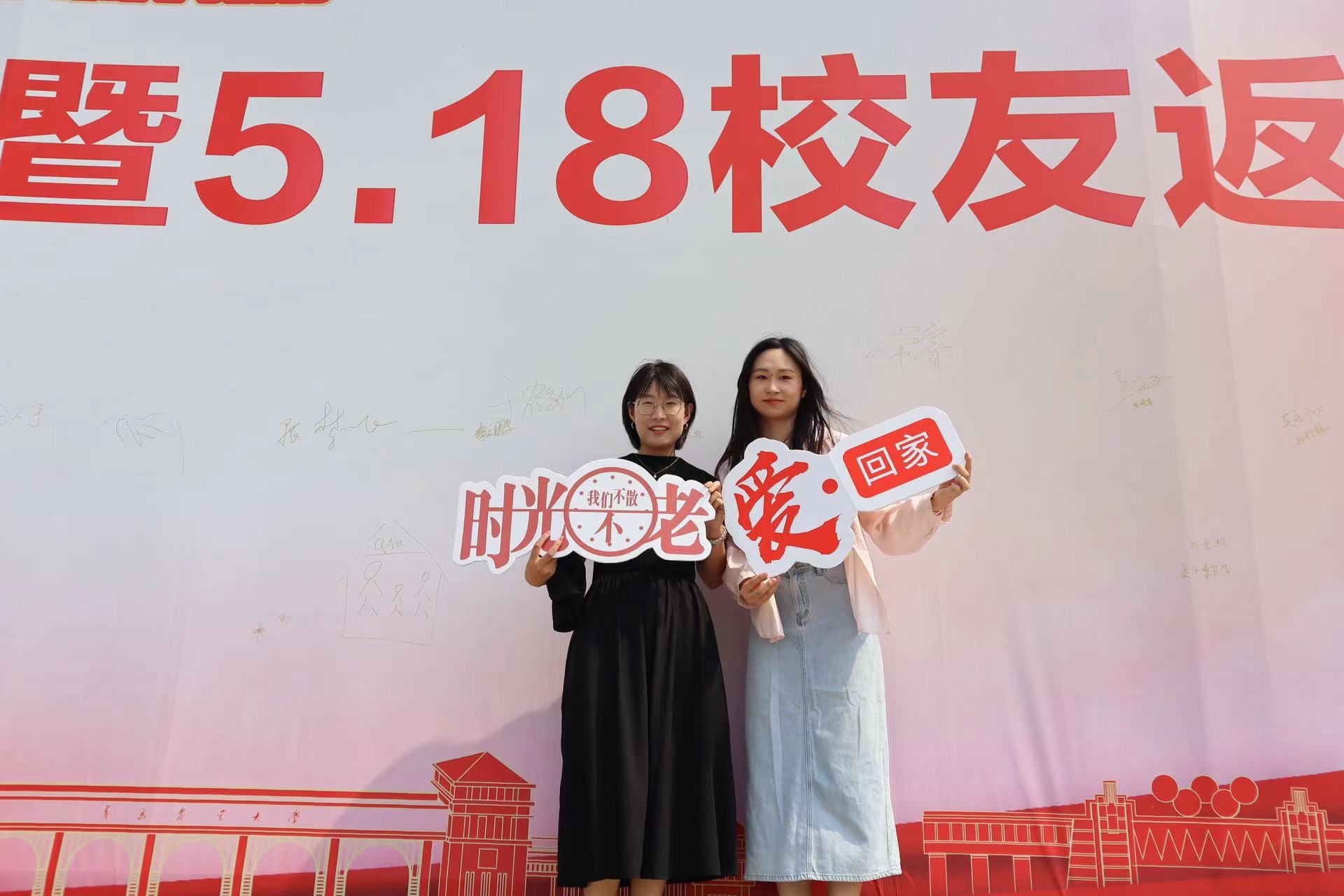 本次校友返校日活动以“青春忆芳华,聚力谱新篇”为主题,在主楼前广场的签到中心,学院设置了“怀旧瞬间”签名合影留念活动,校友们在签名板上签名并合影留念,重温毕业时刻。
