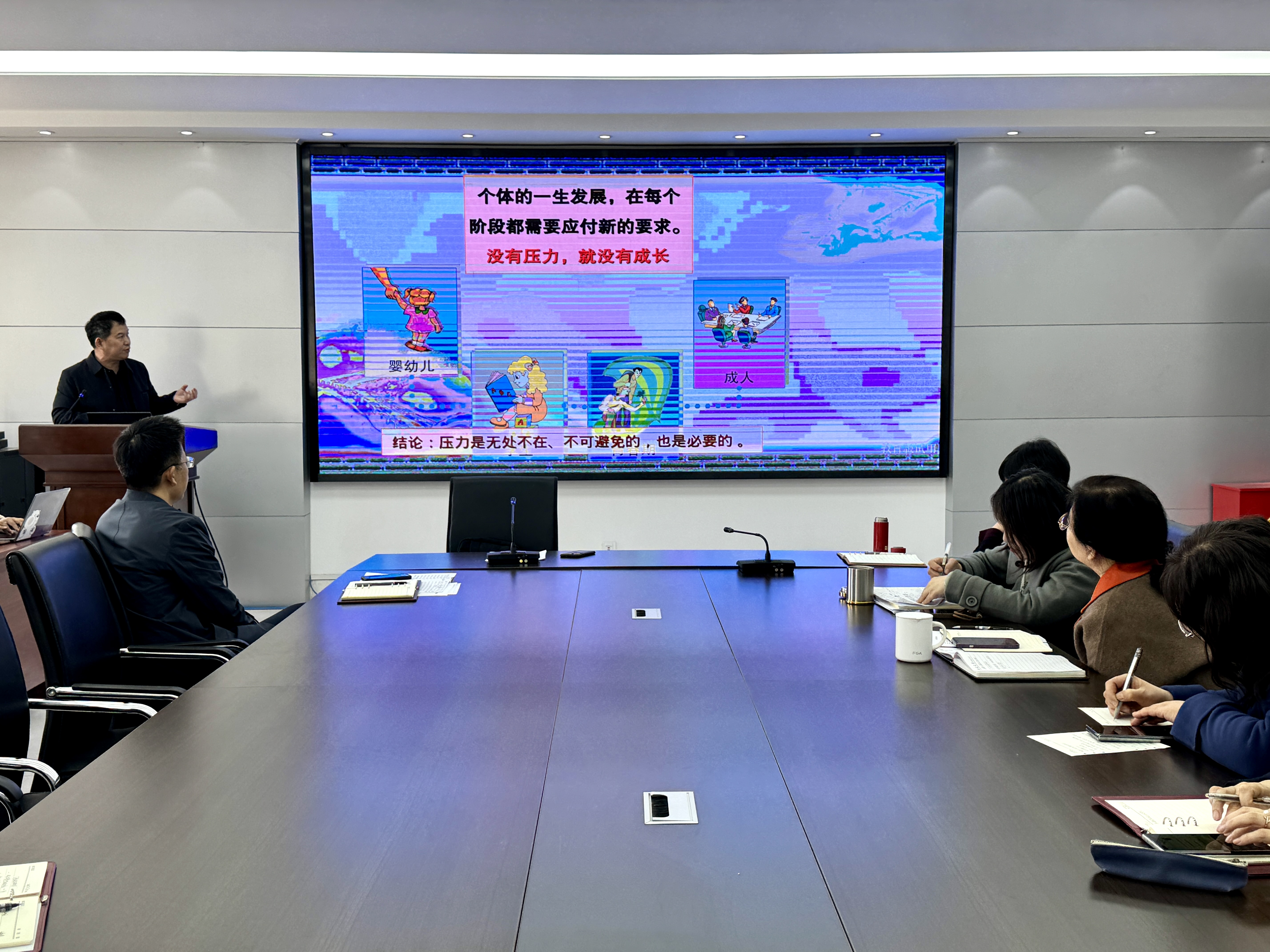 王效仿首先分析了高校教师情绪管理与压力应对存在的问题,他结合实际案例,详细讲解了关于情绪管理及压力应对的心理学知识,深入浅出地阐释了情绪产生的机制、压力的来源以及它们对个体心理和行为的影响,使教师们对自身情绪和压力有了更深刻的认识。