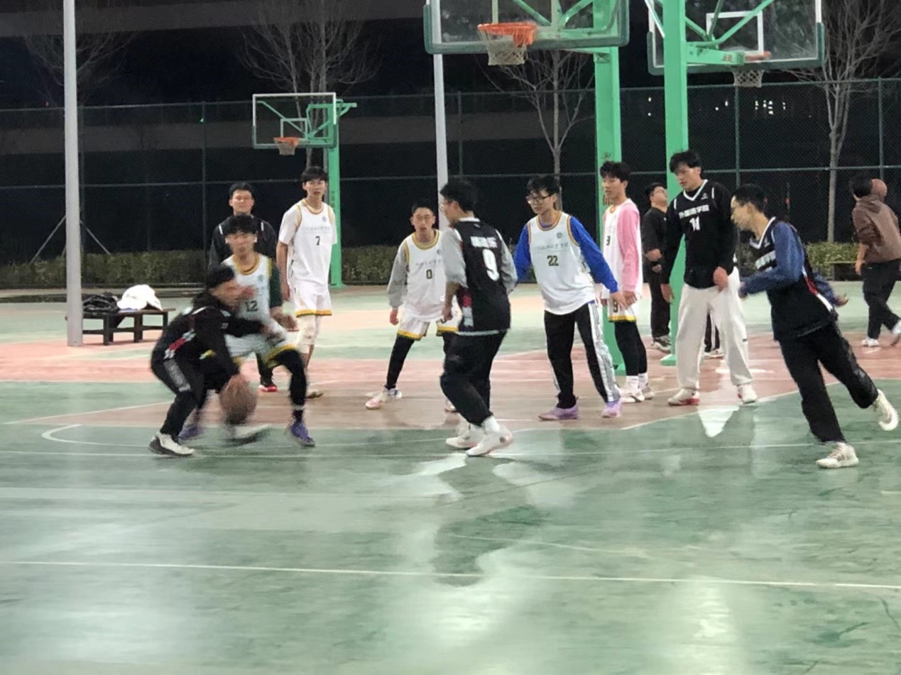 3月24日晚,williamhill体育在线登录和人文社会科学学院男子篮球队于平度校区东苑篮球场举办友谊赛。两个学院大一全体男篮队员参加。两院辅导员到场为队员加油助威。