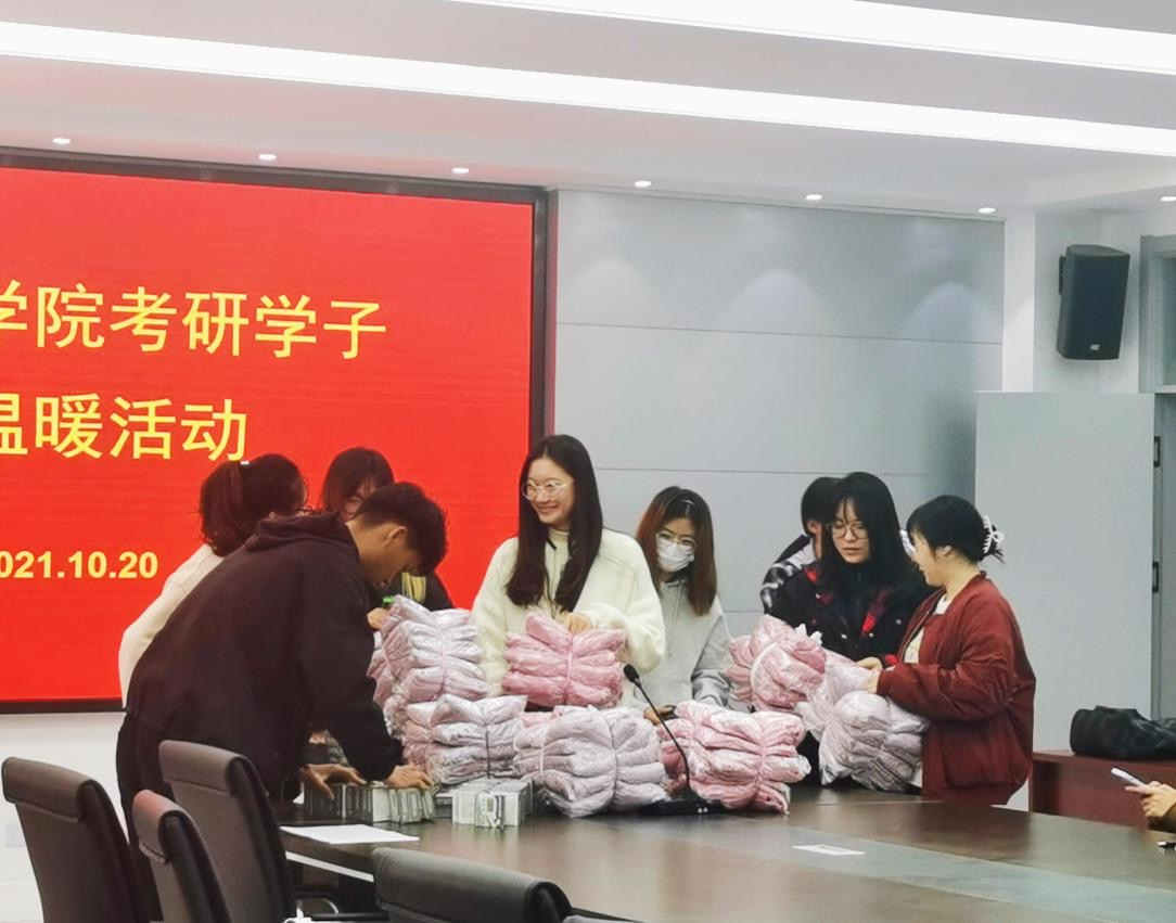 10月20日,williamhill体育在线登录于文经楼C220开展为考研学子送温暖活动。辅导员线郁、王洋洋为大家分发考研暖心物资。