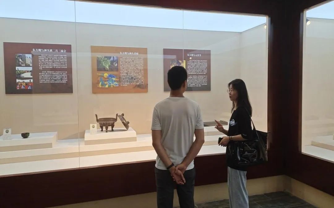 第二站,团队来到了东方朔文化展馆。文化展馆内,一块块浮雕拼凑起东方朔的功与德;一卷卷字画绵延现出东方朔的身与名。展馆内的墙壁上各式各样的插图及详细的注释,使团队成员不禁驻足观看。