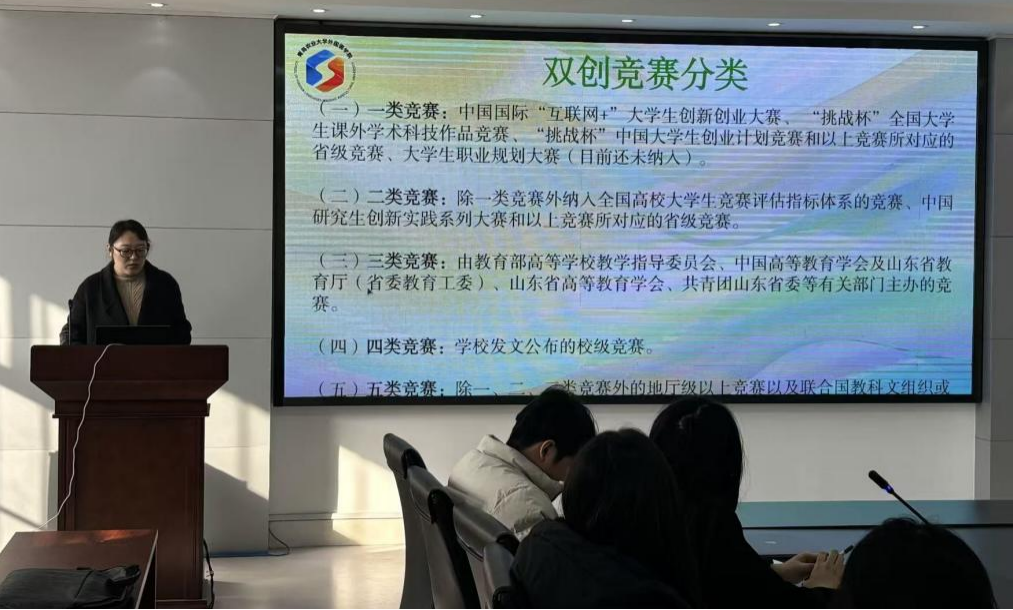 张玉灵重点围绕研究生毕业要求,详细解读了挑战杯等系列竞赛的核心价值。按竞赛类别对研究生可参与的各类赛事进行了梳理,详细讲解各赛事定位、参赛要求及评审标准。为帮助同学们直观理解优质作品的创作思路,她组织大家观看往届优秀参赛作品,深入分析作品的亮点与可借鉴之处。
