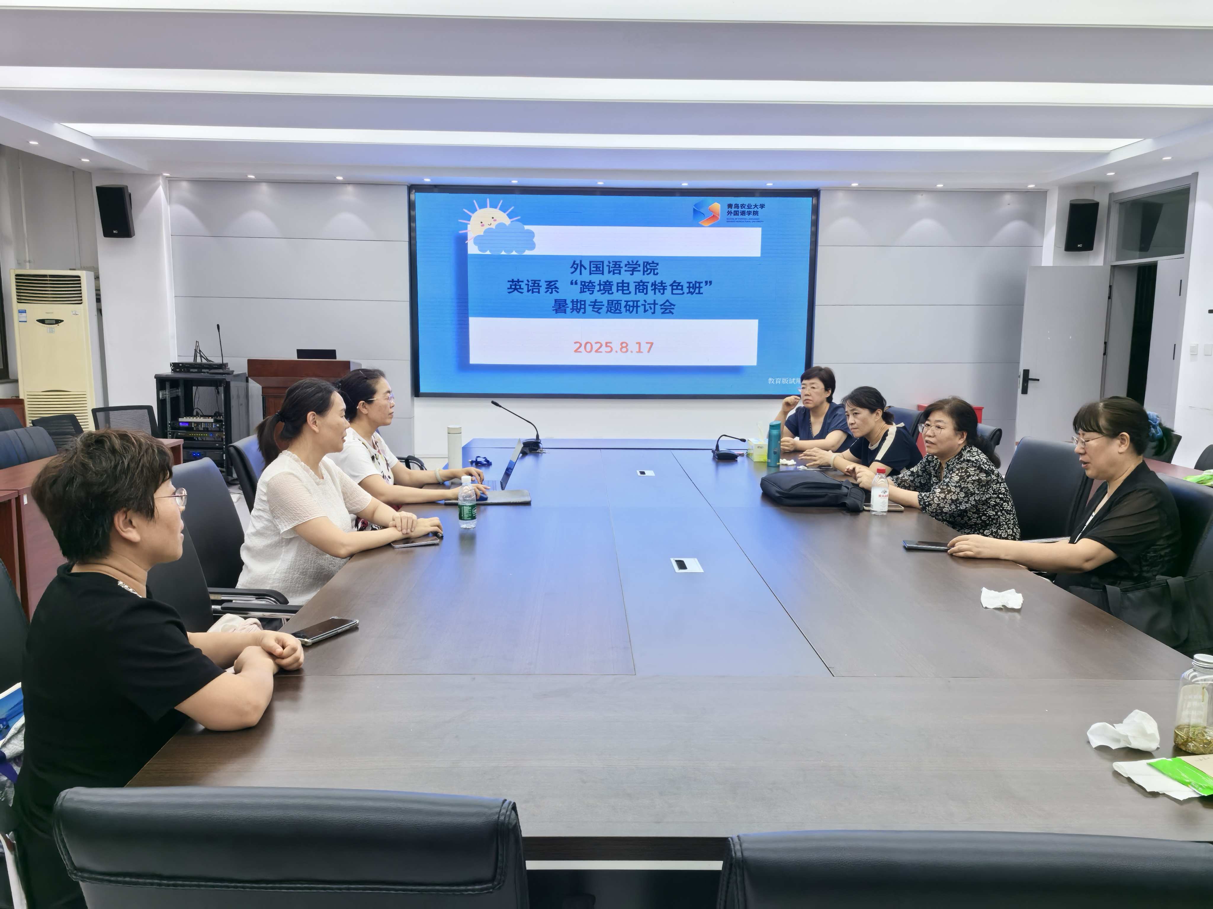 williamhill体育在线登录于2025年8月17日召开“跨境电商特色班”暑期专题研讨会,学院领导和英语系骨干教师在调研报告的基础上,围绕2025级英语专业“跨境电商特色班”的组建工作展开深入讨论,共同研讨特色班的培养方案、课程体系及未来发展目标。参加本次研讨会的有williamhill体育在线登录院长纪卫宁、副院长李春梅、副院长高秀雪、英语系主任徐玉凤、副主任左燕茹以及英语系骨干教师姚雪丽、郭飞、赵清。
