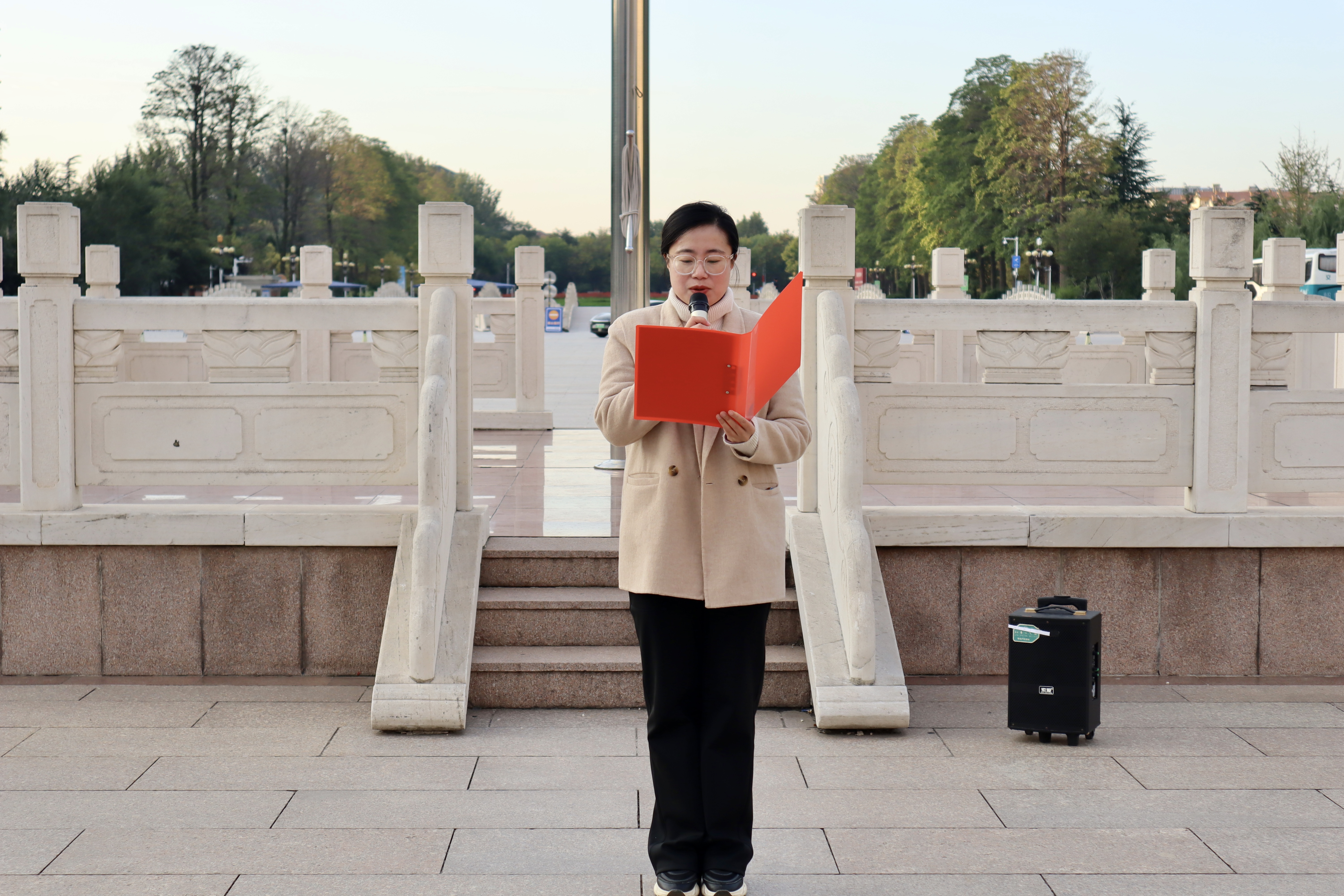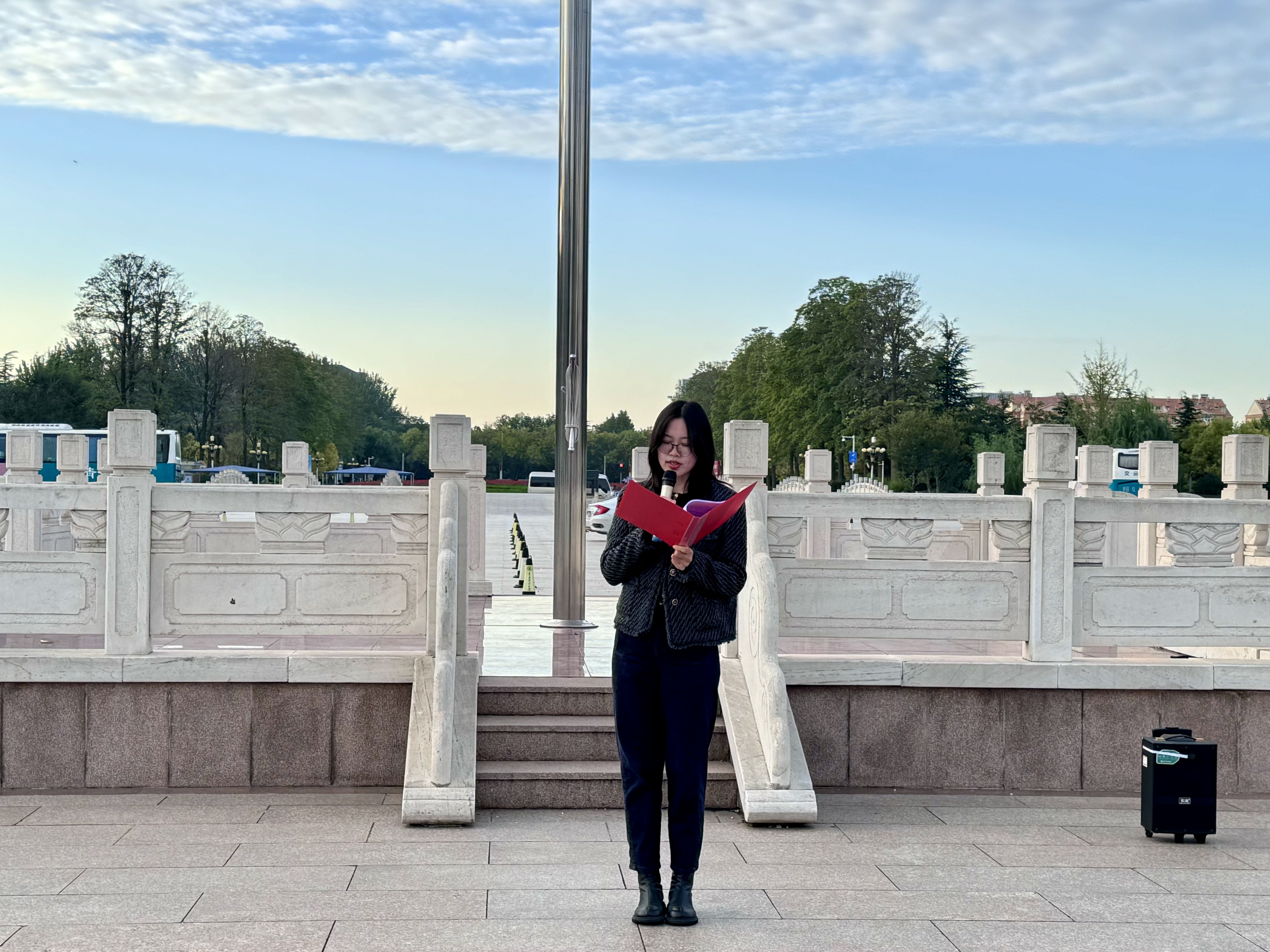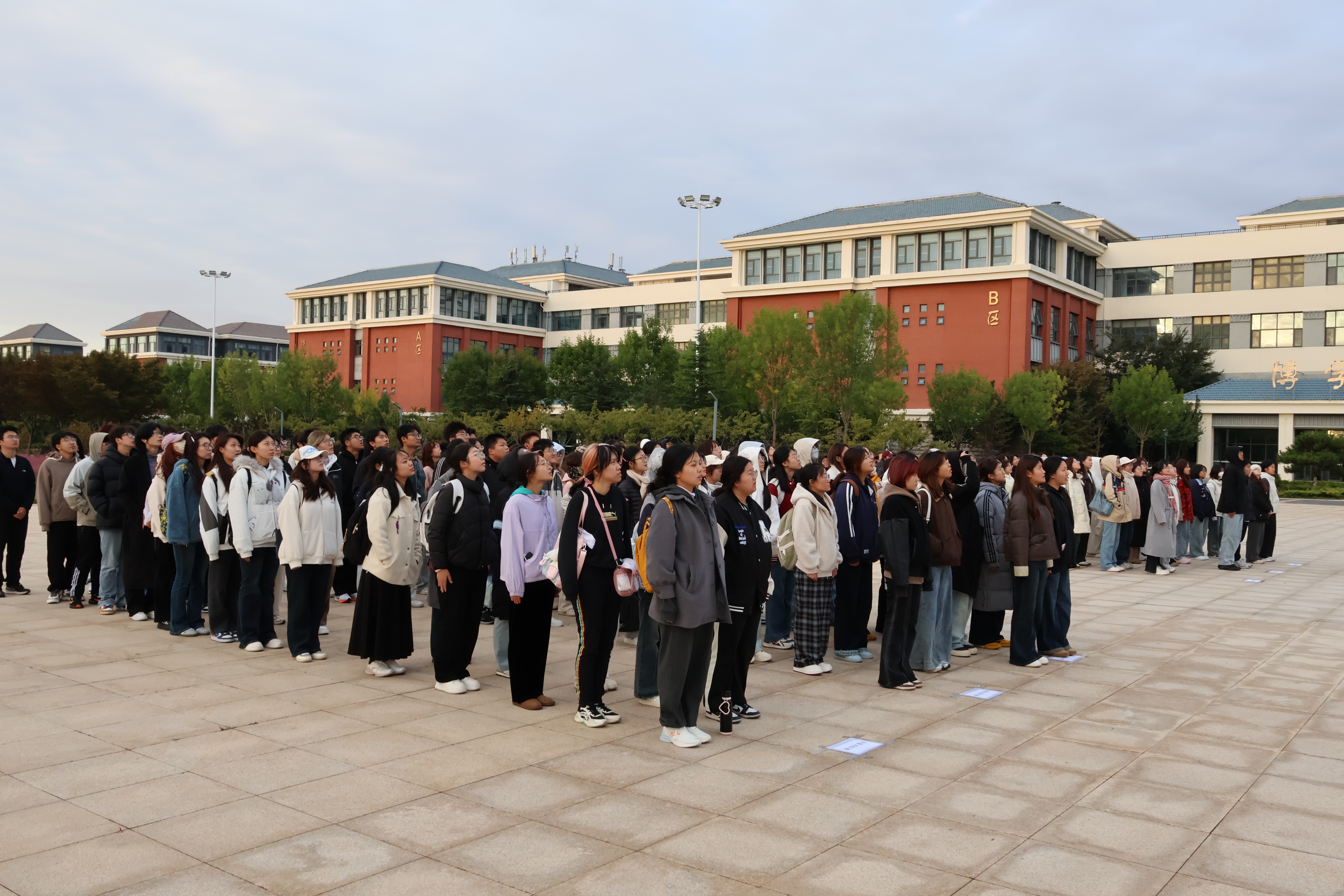 10月20日,williamhill体育在线登录分别于城阳校区虹子广场和平度校区学子广场开展“厚植爱国情怀,勇担历史使命”主题团日活动暨升国旗仪式。城阳校区、平度校区升旗仪式分别由团委书记线郁、辅导员王洋洋主持,2023级、2024级、2025级全体学生参加。