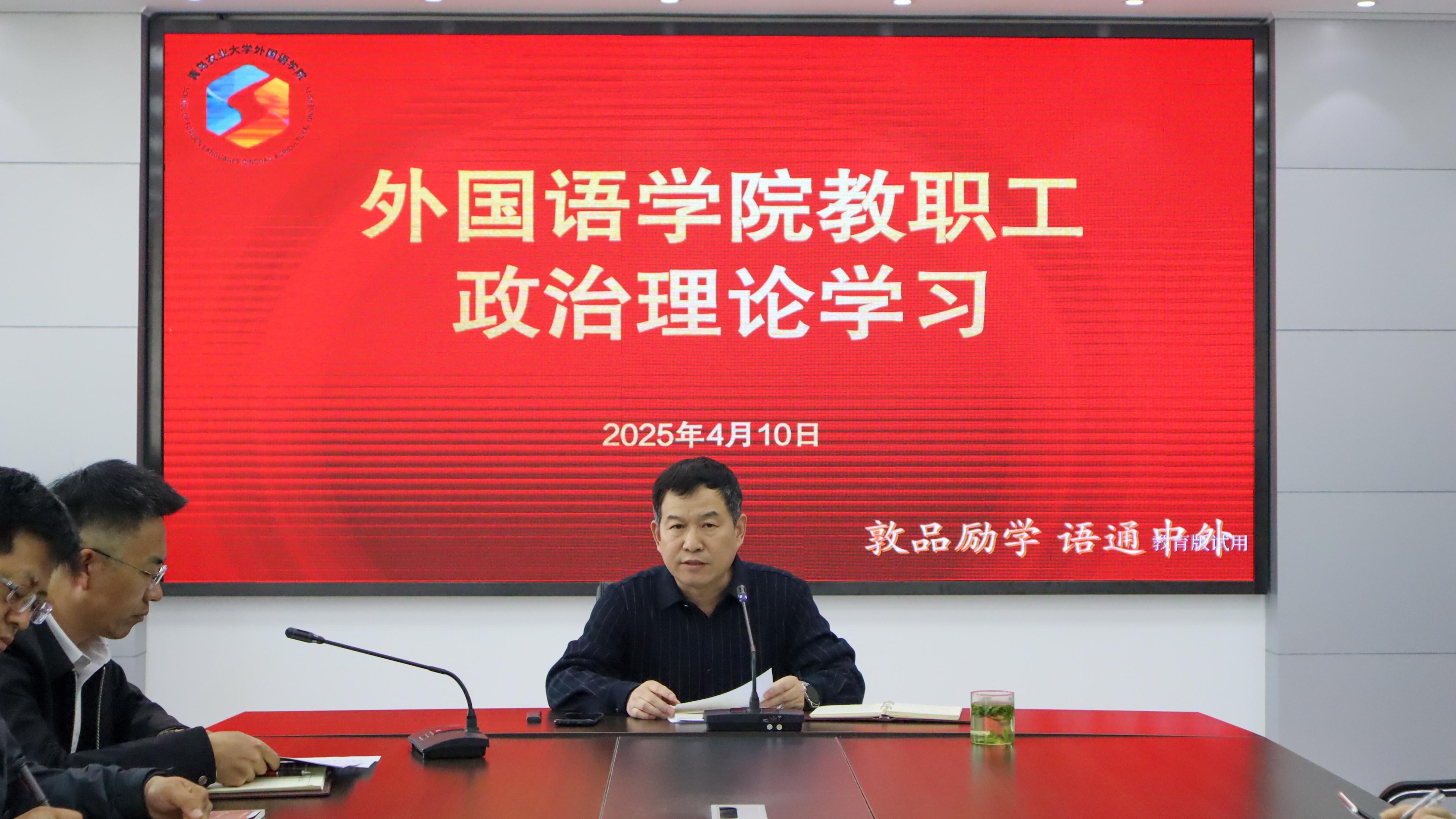 4月10日,williamhill体育在线登录在文经楼会议室组织中央八项规定精神学习教育专题学习。williamhill体育在线登录党委书记王效仿以《严格遵守中央八项规定精神 做新时代合格高校教师》为题讲授专题党课,全体教职工参加学习。