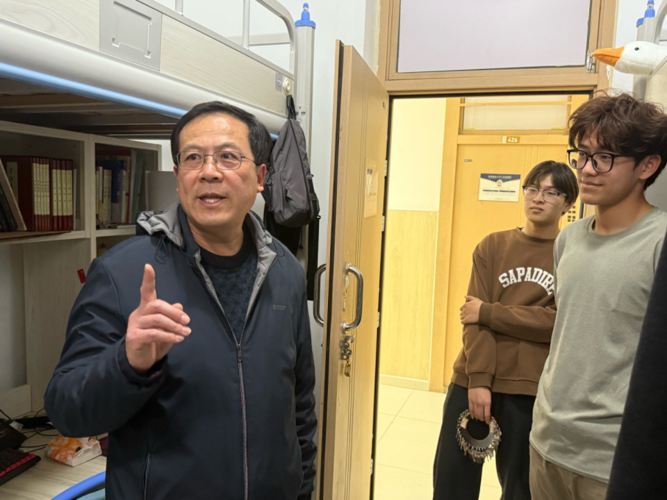 3月9日和3月11日,王晓雷和翟崑在城阳和平度校区带队走访男生、女生宿舍,实地查看宿舍内务整理、安全卫生等情况,与同学们亲切交谈,细致了解大家的学习生活状态、假期归来适应情况及实际需求,叮嘱同学们注意人身财产安全,养成良好作息习惯,营造和谐温馨的宿舍氛围。
