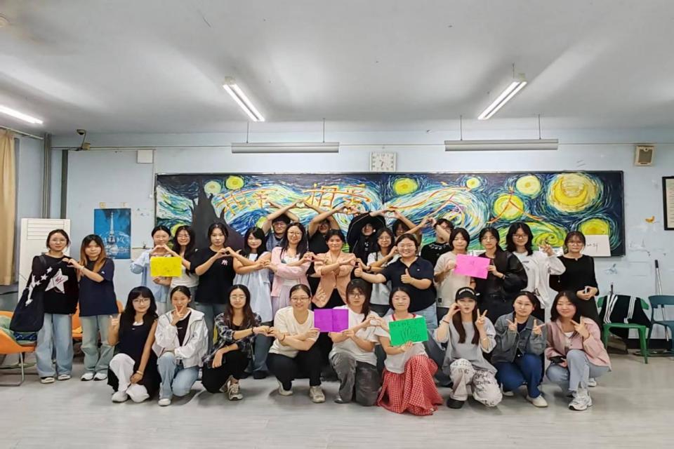 主持人引导参与者有序签到入场,详细介绍活动背景、目的与流程。进入游戏环节,“大风吹” 让参与者按特征快速换座,迅速活跃气氛;“前方打仗,后方支援” 中各小组竞速集齐指定物资,强化团队配合;“不倒森林” 要求成员同步移动接棍,锻炼专注力与反应力。每个游戏后,主持人简要引导分享,提炼协作与解压技巧。活动最后,全体参与者合影留念。很多学生干部表示,活动有效释放了压力,也加深了与其他骨干的沟通。活动最后,全体参与者合影留念。
