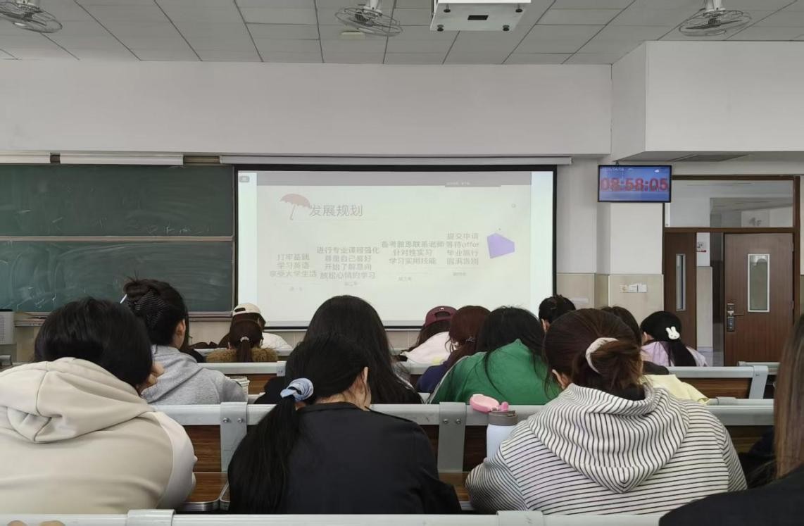 庄相婷则带来了一段跨界成长的精彩故事。从药学专业成功转至英语专业后,她始终保持奋进姿态,在专业学习中不断突破自我,成绩稳步提升,逐步站上省赛、国赛的舞台;同时,受身边同学影响,她确立了外交方向的发展目标,凭借不懈努力,成功考取外交学院英语口译专业,为新生提供了宝贵借鉴。