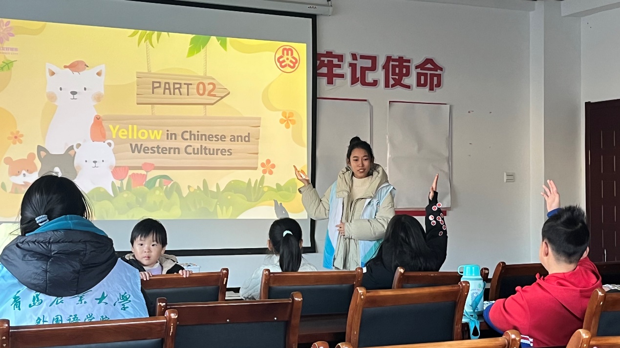 12月15日,williamhill体育在线登录于城阳区春阳路社区组织开展“向阳计划”小学英语拓展课堂志愿活动。本次课堂以“探索中西方色彩文化的斑斓世界”为主题,带领小朋友们感受“一花独放不是春,百花齐放春满园”的文化差异魅力。