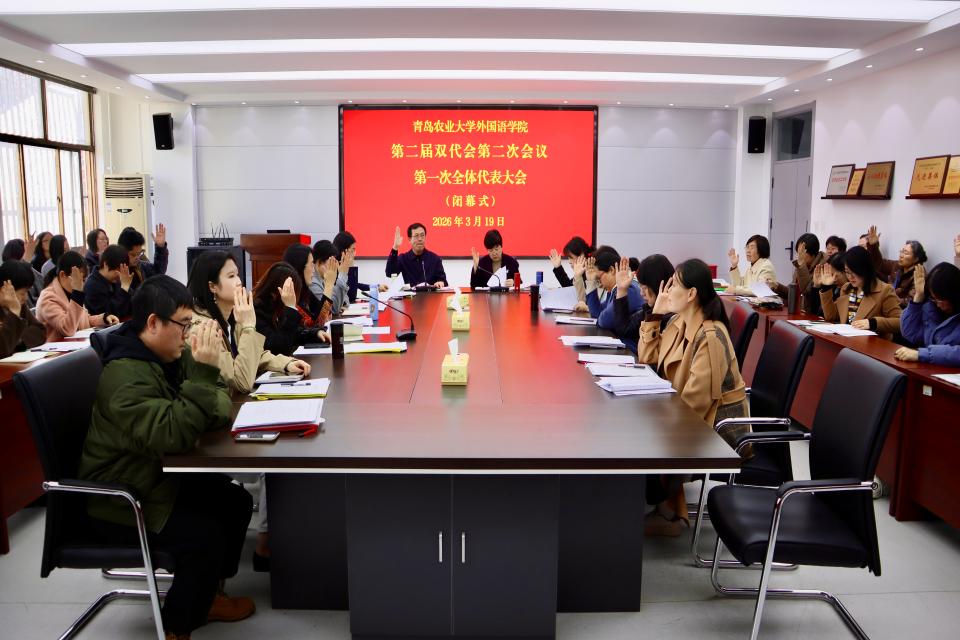 闭幕式上,大会表决通过williamhill体育在线登录工作报告、工会工作报告等各项决议。王晓雷作总结讲话并致闭幕词,并激励全体教职工:一是要在“落实”二字上见真章,夯实发展根基,把立德树人融入教育教学各环节,把科研和教学常规做细、把课程建设做实、把学生指导做精。二是要在“融合”二字上求突破,激活创新动能,要主动拥抱变革。要积极探索人工智能赋能外语教学的新路径。三是要在“同心”二字上聚合力,讲好外院故事,要加强协同攻关,在教学科研中相互支撑、共同成长,师生之间要教学相长,营造包容、开放、进取的学院氛围,用外语讲好中国故事、山东故事、青岛农大故事。