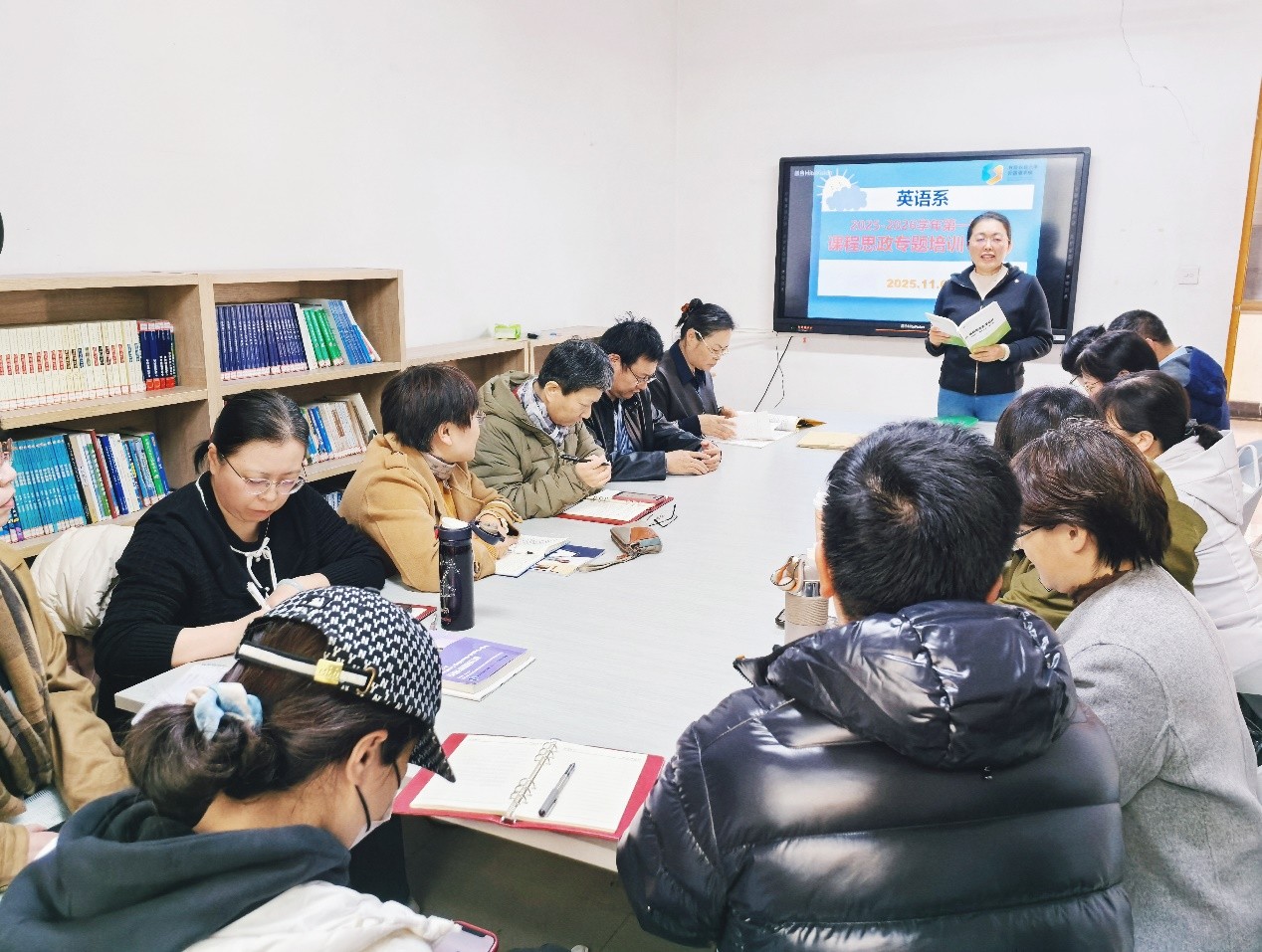 通过两场系统深入的专题培训,英语系全体教师对课程思政的理解实现了从理念认知到实践能力的全面提升。教师们认为,此次培训犹如一场“及时雨”,不仅厘清了课程思政“为什么做”的价值内涵,更解决了“怎么做”的方法论问题。全系培训学习后,英语系教师以课程团队为单位展开了更为深入的研讨交流。在研讨中,各课程团队结合专业特色形成了具象化的实践方案:文学、文化类课程挖掘经典作品中的家国情怀与人文精神,跨文化类课程融入中国治理案例与跨文化沟通智慧,翻译类课程注重传播中华优秀传统文化的译介策略。做到通过课程思政的融入彰显外语课程特有的育人价值。