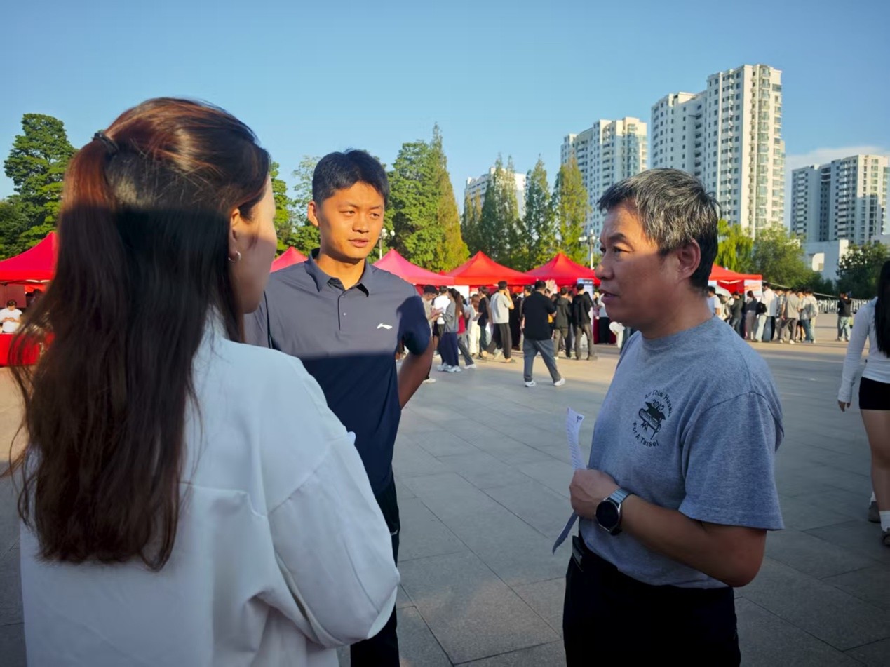 在各参会企业展位前,王效仿、盛金玉和王洋洋主动与企业招聘负责人沟通接洽,详细了解企业招聘需求、岗位设置、薪资待遇及对人才能力的要求等情况,同时,与现场求职的学院毕业生亲切交流,鼓励毕业生把握招聘机遇,积极对接优质岗位。