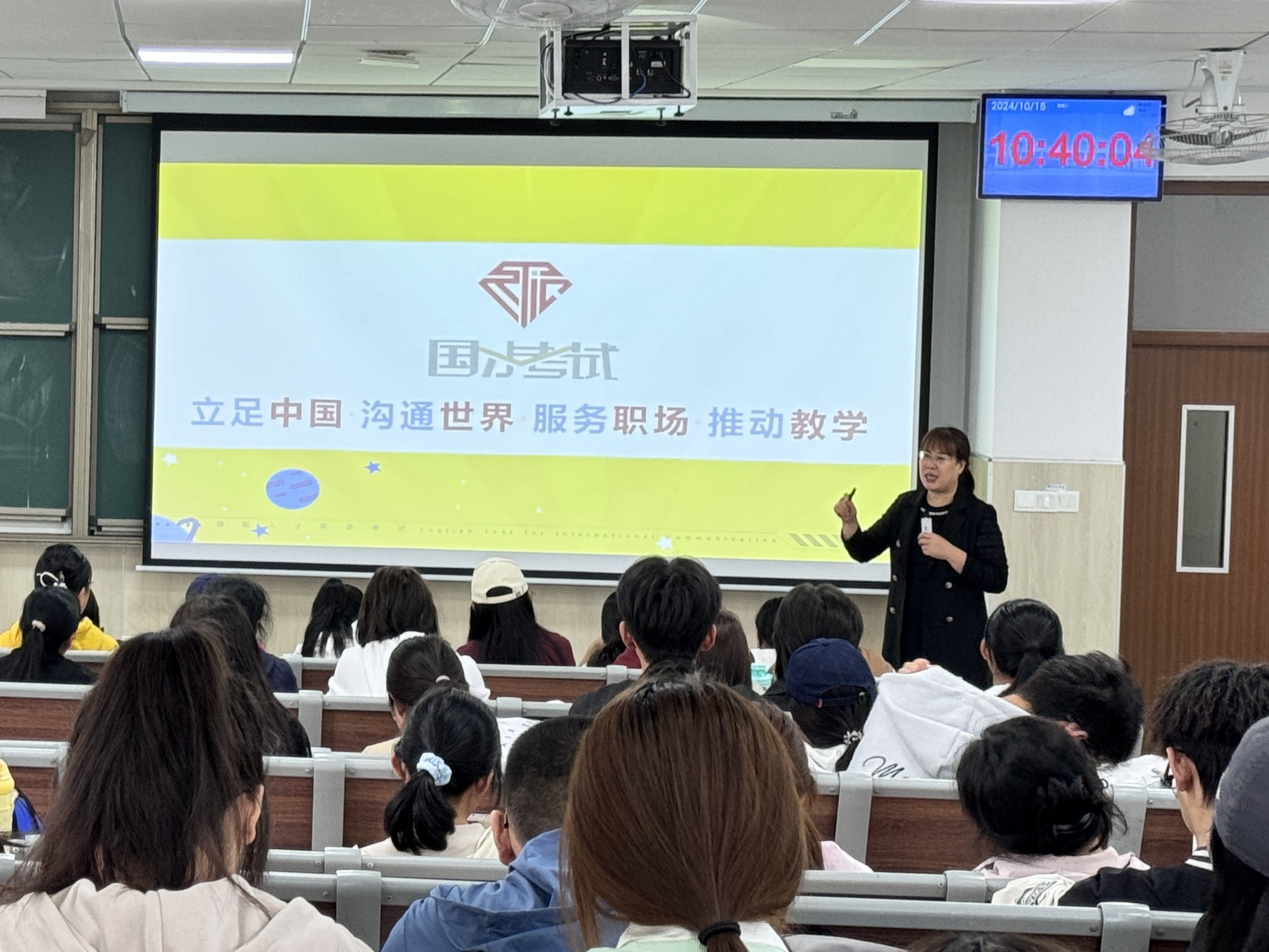 10月15日,williamhill体育在线登录在平度校区博学楼C201举办“职”通精彩未来,展现时代风采——国才考试宣讲会,会议由英语系副主任兼校企合作方向负责人左燕茹主讲,辅导员王洋洋主持,williamhill体育在线登录2024级英语专业全体同学参加。
