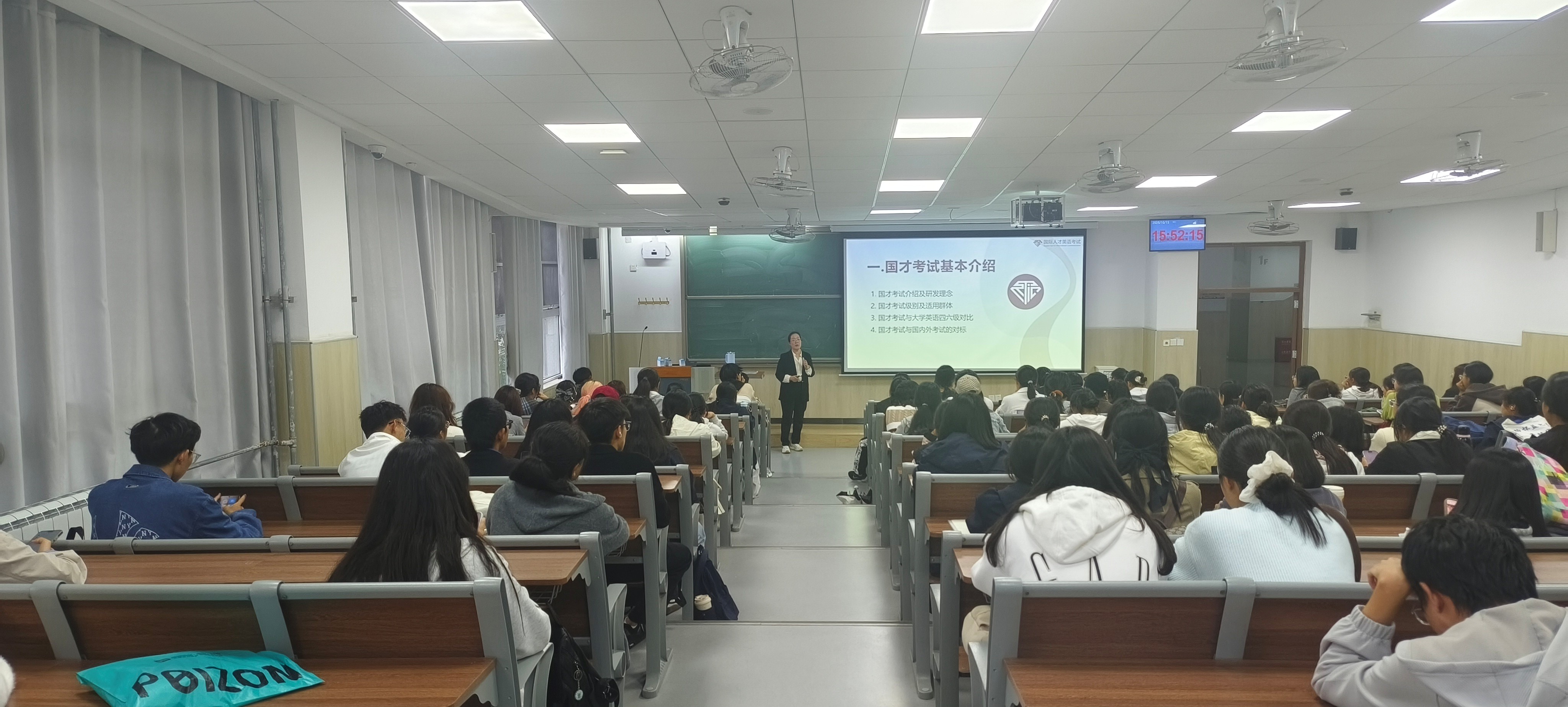 为帮助2025级新生全面了解国际人才英语考试(国才考试),2025年10月15日,williamhill体育在线登录大学英语第二教学部在平度校区博学楼A101举办专题讲座,吸引了上百名同学参加。讲座由大学英语第二教学部副主任邹秋娟担任主讲。
