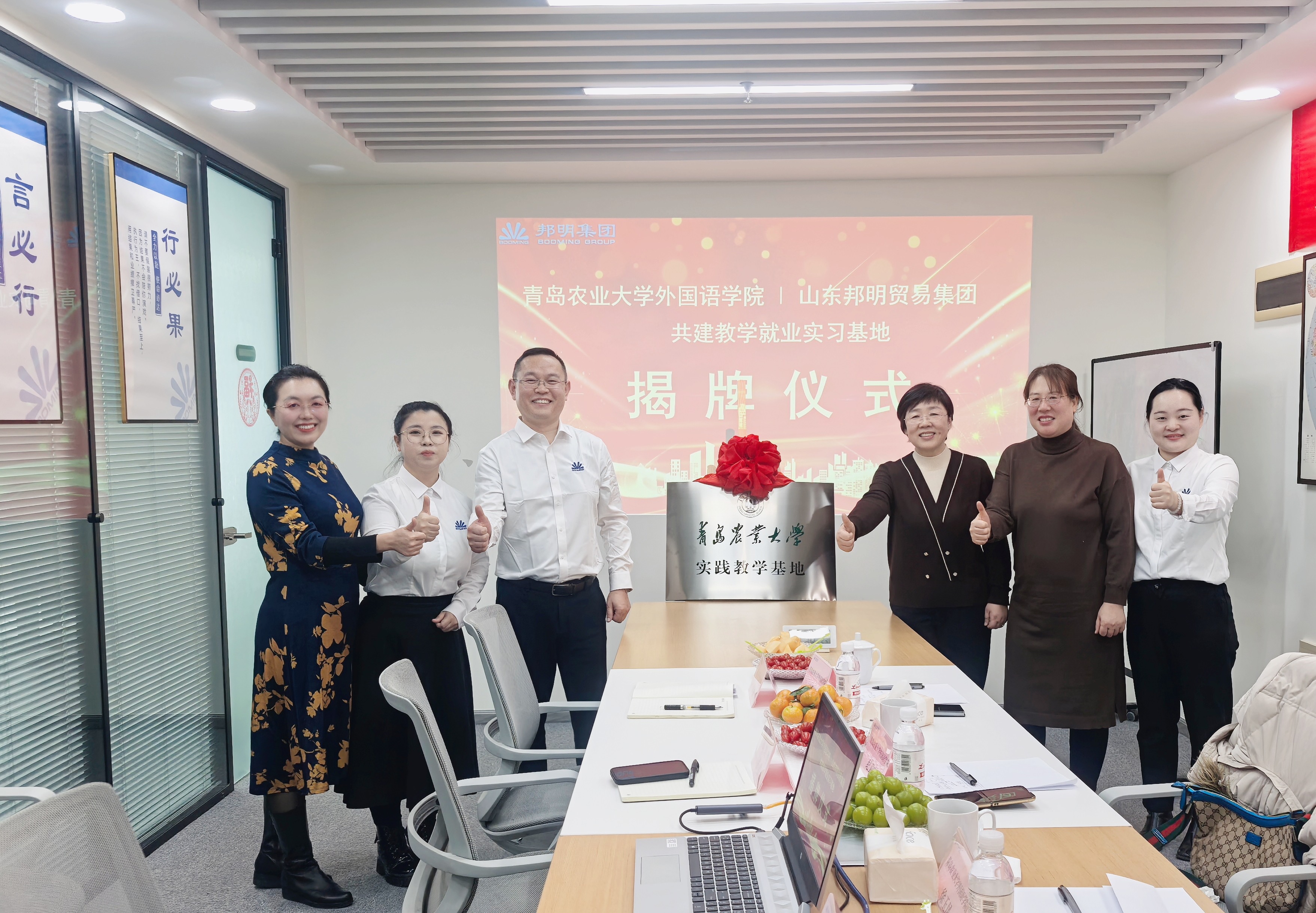 12月17日,williamhill体育在线登录赴山东邦明贸易集团就共建校外教学实习基地签署合作协议。院长纪卫宁、英语系主任徐玉凤、副主任左燕茹参加了座谈和签约仪式。邦明集团总经理张君、人力行政经理郭畅和人力专员王凤娇出席了座谈和签约仪式。